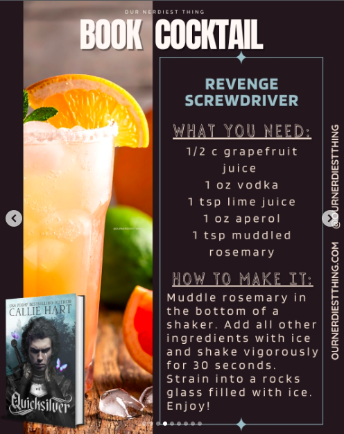Mix this cocktail and be convinced that our MCs are mates as you listen to Quicksilver, Episode 37 - Jizz of the Gods! This season’s Book Club covers Quicksilver by Callie Hart. This cocktail is brought to you by Whitney!